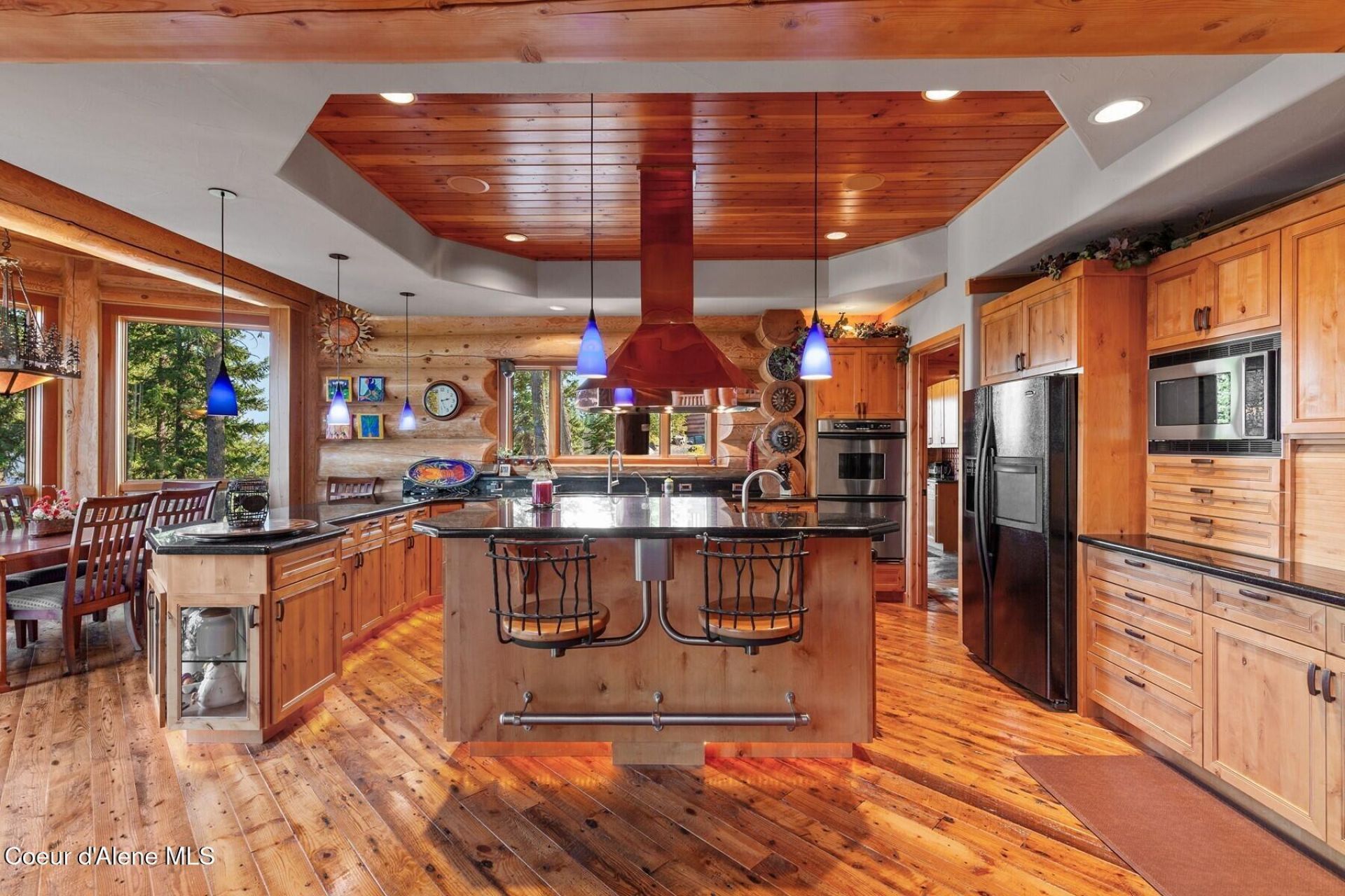 Your Own Private Idaho Luxury Log Retreat Overlooking Lake Coeur d'Alene. Experience true North Idaho luxury in this one-owner, custom-built Swedish Cope log home on 10 pristine acres w/sweeping views of Rockford Bay. Crafted w/timeless detail, this 8000 SF masterpiece features soaring 24' ceilings, reclaimed 130-year-old wood floors, heated stone & expansive windows framing breathtaking lake & forest vistas. The gourmet kitchen, butler's pantry, wine cellar, & cozy theatre room make entertaining a dream, while a vertical valet delivers firewood right to your fireplace. The primary suite offers gas fireplace, dual closets, & soaking tub w/postcard-perfect views. Enjoy smart-home features, whole-home generator, surveillance system, & multiple fireplaces for year-round comfort. The attached garage & 30X40 SHOP include space for future living quarters, w/plumbing, septic, & a dedicated power panel. Just minutes from the lake, marinas, golf & only 30 minutes to downtown CdA.Idaho Paradise.